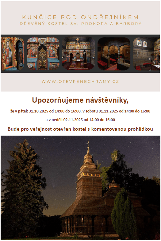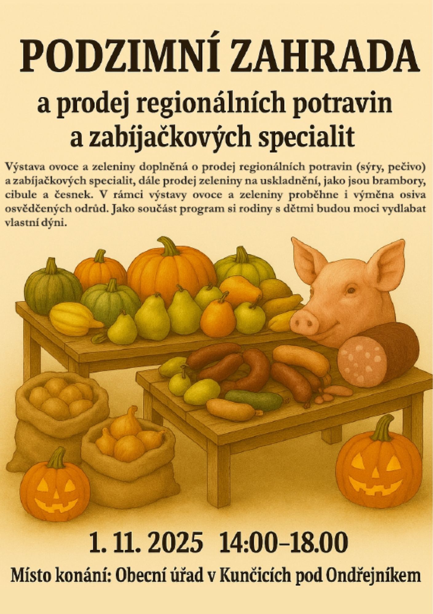 Pozvánka na akce konané v Kunčicích pod Ondřejníkem 23.10.2025 Pozvánky na nejbližší akce konané v Kunčicích pod Ondřejníkem. kostelik_pozvanka_dusicky.png (163kb) Lampionovy_pruvod_pozvanka.jpg (454kb) detske_divadlo_pozvanka.jpg (345kb) podzimni_zahrada_pozvanka.jpg (329kb) jarmark_pozvanka.jpg (306kb) Charitativní bazar barva 2025[1].pdf (451kb)
