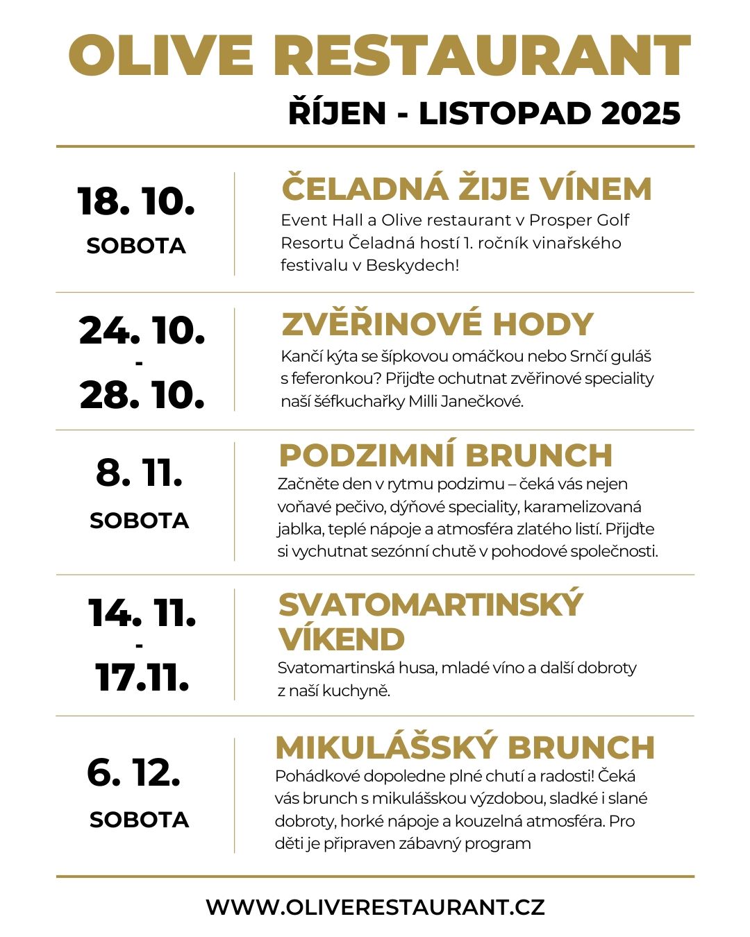 "Zvěřinové hody" v Olive Restaurantu v Čeladné ve dnech 24. – 28. 10. 2025
