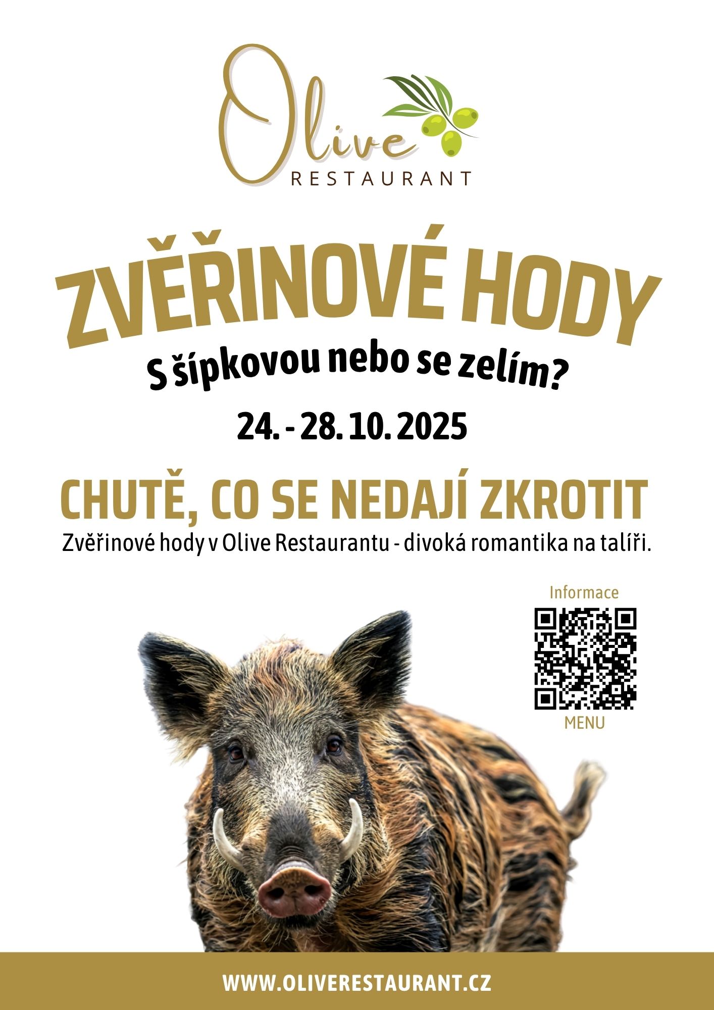 Divoké chutě, kvalitní servis a atmosféra, která vás vtáhne. Olive Restaurant vás zve na tradiční zvěřinové hody, kde se srnčí, kančí i jelení promění v gurmánský zážitek.