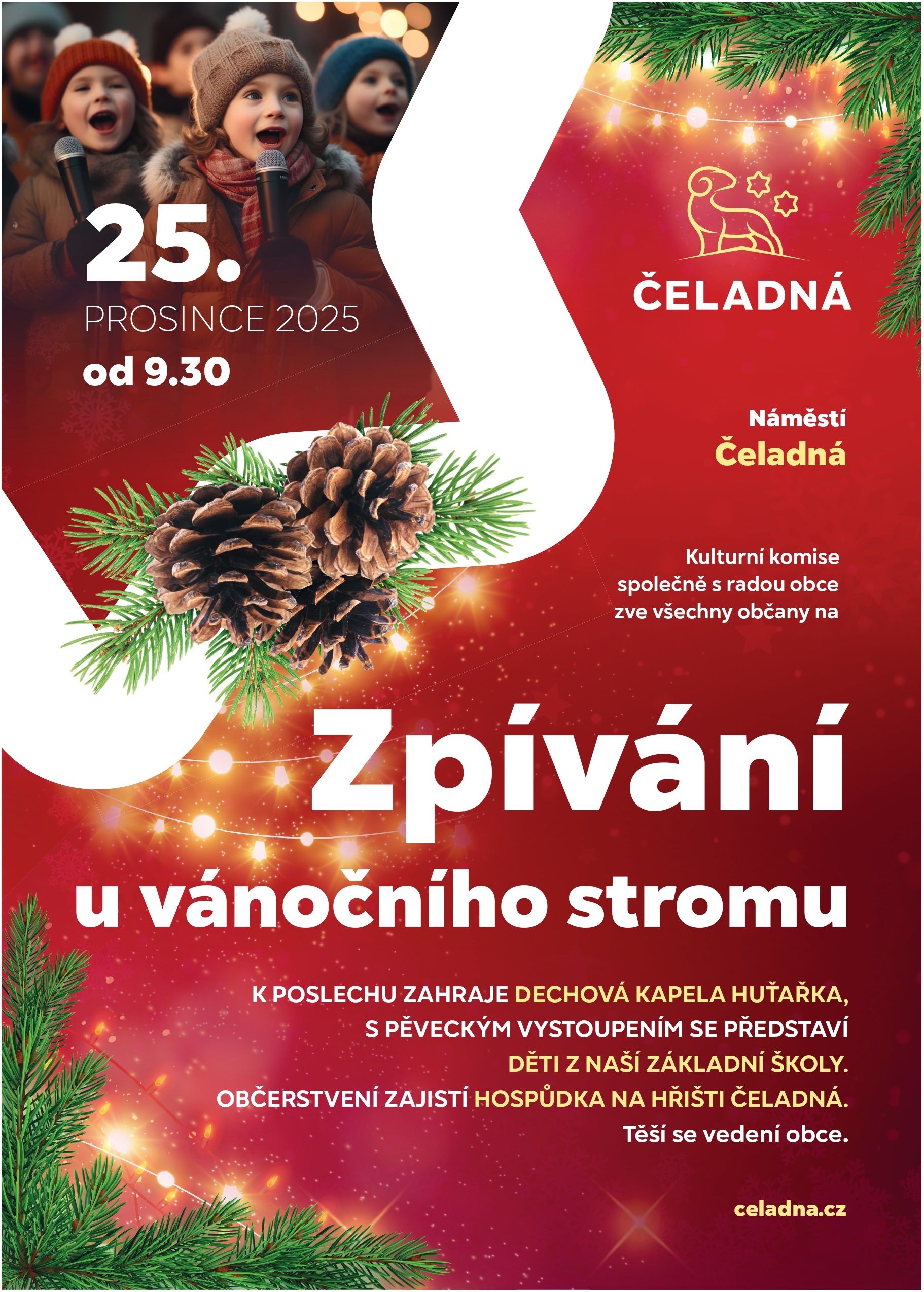 Kulturní komise společně s radou obce zve všechny občany 25. prosince 2025 od 9.30 hod. ke zpívání u vánočního stromu.